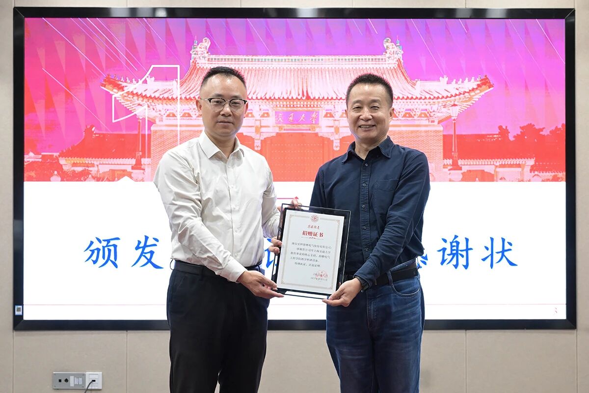 此次愛科賽博向上海交通大學捐贈的愛科精密測試電源設(shè)備,將直接應用于上海交大電氣工程學院的教學和科研。捐贈儀式上,校基金會汪雨申秘書長向白小青董事長頒發(fā)了捐贈證書,劉亞東常務副院長與白小青董事長共同為捐贈設(shè)備揭幕,并向白小青董事長頒發(fā)了捐贈紀念牌。