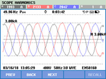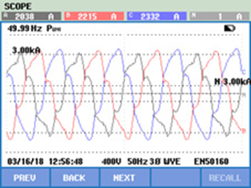 電流畸變率(投入設備前)                                電流畸變(投入設備后)